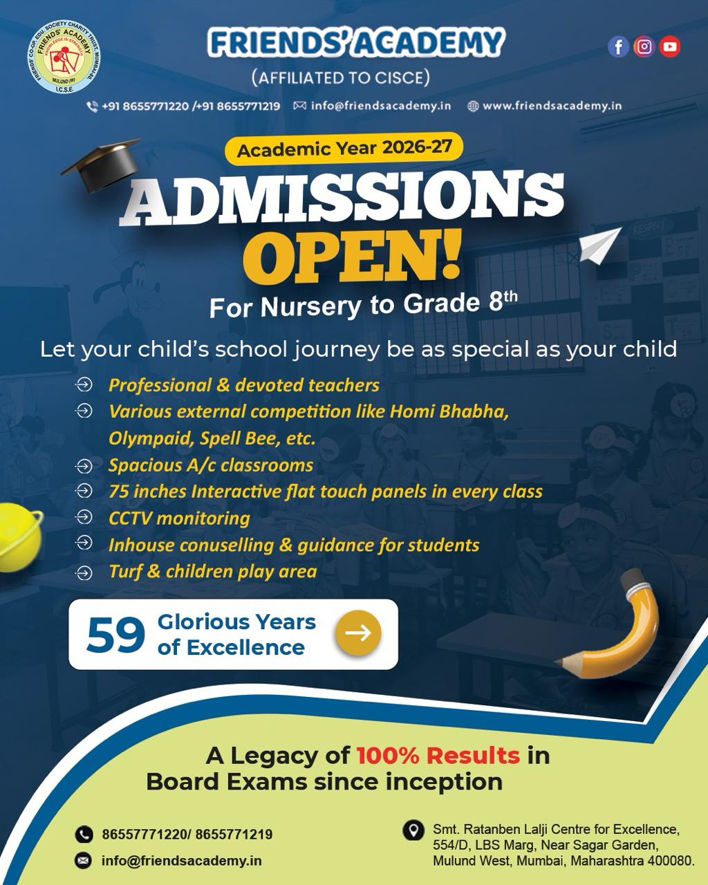 - Open for Nursery to Grade 8 Admissions
