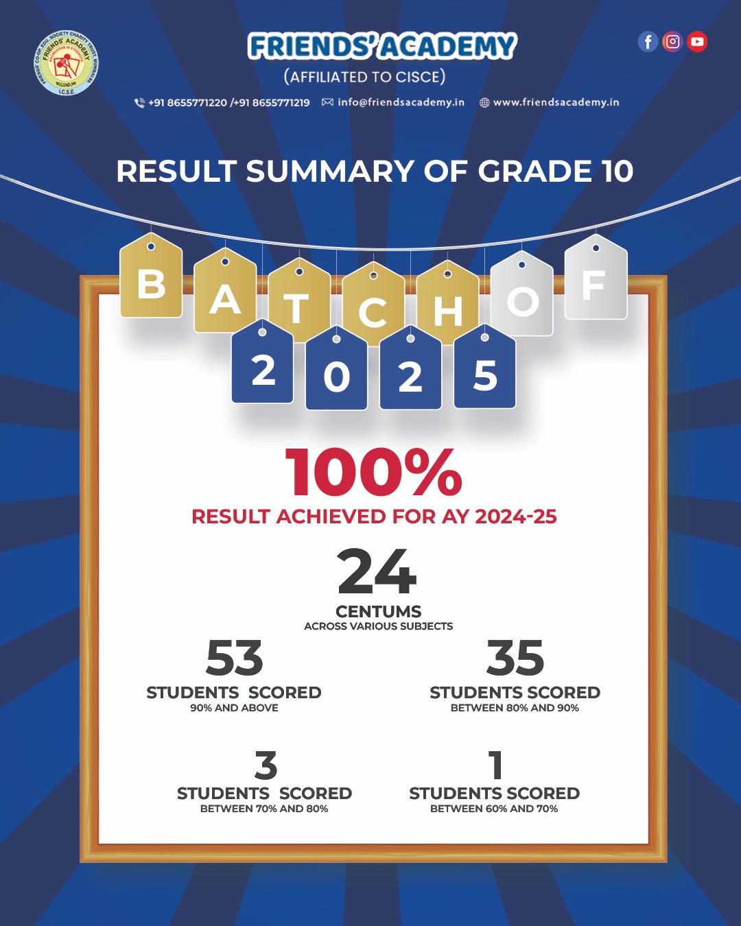 Friends' Academy is affiliated to CISCE Board.